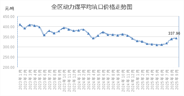 9月份,全区动力煤月度平均坑口价格为342.31元/吨,与8月份相比(下称环比)上涨1.29%,与2024年9月份相比(下称同比)下降4.15%。其中,东部褐煤平均坑口价格为332.57元/吨,环比价格略涨0.82%,同比价格略涨0.95%;鄂尔多斯地区动力煤平均坑口价格为417.50元/吨,环比价格上涨2.30%,同比价格下降8.87%。
