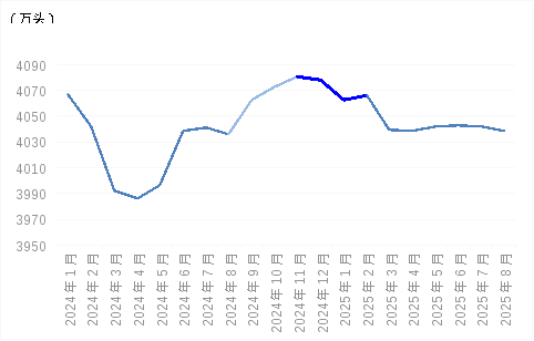 供给方面,今年以来生猪市场供应充足,且基本呈环比增长态势,截至9月末,国内生猪存栏量为43680万头,较年初增长2.19%。按照生猪生长周期推算,四季度生猪出栏对应前10个月能繁母猪存栏情况,即2024年12月至2025年2月能繁母猪存栏量。据农业农村部数据显示,这一时期能繁母猪存栏量处于相对高位,维持在4060万头以上,理论上今年四季度生猪出栏量较高。为稳定生猪市场价格,相关部门采取组织养殖户有序减产、控制出栏体重、规范二次育肥等组合措施,将有效缓解生猪市场供应压力。调查了解到,8月份规模养殖场和小型养殖场能繁母猪淘汰量均高于去年同期。