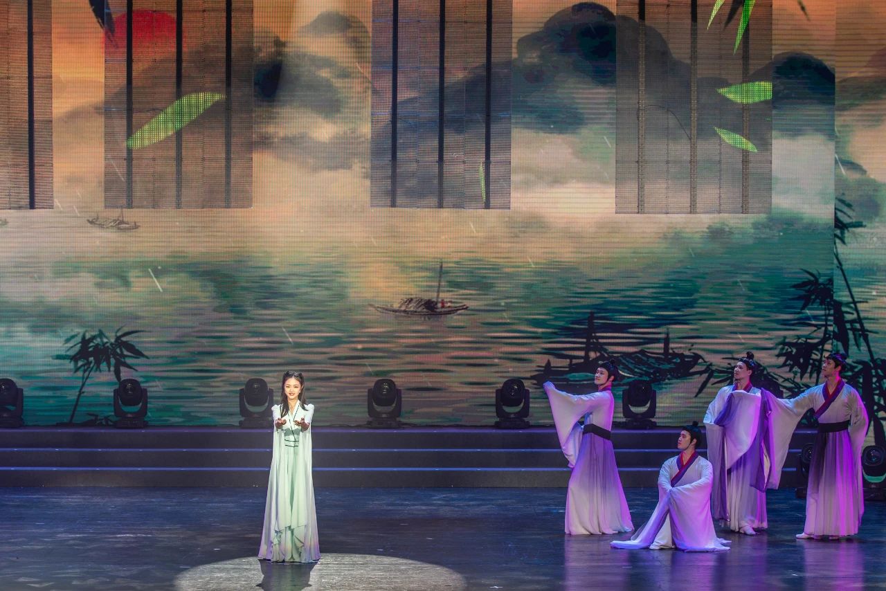演出融朗诵、吟诵、声乐、器乐、舞蹈、书法、绘画等多种中华传统艺术形式于一体,有效地实现了多种艺术形式在同一审美空间的完美融合,呈现在声光电、多媒体、虚拟现实等时尚唯美的现代舞台上,从而展示了中华艺术“思与境偕”“物我两忘”“言有尽而意无穷”的境界,给与观众沉浸式的审美享受。