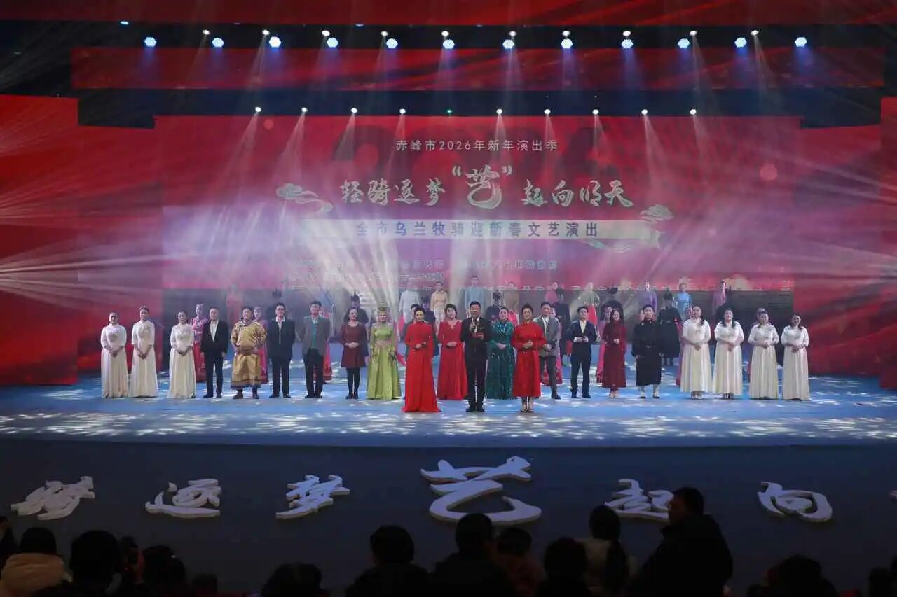马头琴悠扬穿越红山风雪,民族舞蹁跹踏响新春节拍。1月16日晚,由中共赤峰市委宣传部、赤峰市文化和旅游局主办,赤峰市艺术剧院承办,阿鲁科尔沁旗、巴林右旗、巴林左旗、翁牛特旗、喀喇沁旗、宁城县乌兰牧骑联合协办的《轻骑逐梦 “艺”起向明天》全市乌兰牧骑迎新春文艺演出,在赤峰国际会展中心大剧院隆重上演。用饱含深情的艺术表达,为赤峰市各族群众献上了一场兼具民族特色与时代气息的文化盛宴,以文艺之力奏响辞旧迎新的奋进乐章。作为草原上最具生命力的文化符号,乌兰牧骑自1957年诞生以来,始终坚守“扎根生活沃土,服务牧民群众”的初心使命,成为全国文艺战线的一面旗帜。每个队伍带着各自深耕基层的艺术结晶登台献艺,既有经典保留剧目,也有原创精品力作。演出以篇章式结构层层递进,通过歌曲、舞蹈、小品、戏曲、器乐合奏等多种艺术形式,实现了传统与创新的完美交融,既饱含浓郁的民族风情,又紧扣时代发展脉搏,将草原儿女的精气神与“吃苦耐劳、一往无前”的蒙古马精神展现得淋漓尽致。整场演出立意深远、内容丰富,从对家乡故土的深情赞颂到对党的忠诚告白,从对美好生活的热切向往到对奋进征程的坚定信念,每一段旋律、每一个舞姿都传递着真挚情感,彰显着文化自信。演员们以饱满的热情、精湛的技艺全身心投入表演,用艺术的力量连接起舞台与观众,让现场观众在沉浸式体验中感受文化魅力、汲取精神力量。演出过程中,剧场内掌声雷动、暖意融融,精彩的表演引发全场观众强烈共鸣。不少观众表示,在家门口就能看到这么高水平的乌兰牧骑演出,太振奋了!乌兰牧骑是“我们的乌兰牧骑”,他们的演出始终扎根群众、贴近生活,这场演出不仅是艺术的享受,更是一次文化的寻根,让孩子们感受到了民族文化的魅力。舞台上下形成的情感共鸣,生动诠释了“人民需要艺术,艺术更需要人民”的深刻内涵。乌兰牧骑这支诞生于草原的“红色文艺轻骑兵”,始终扎根生活沃土、服务人民群众,把歌声唱给草原,把舞蹈献给祖国,书写了“红色文艺轻骑兵”的使命担当。近年来,赤峰市乌兰牧骑始终坚持以人民为中心的创作导向,从田间地头到大剧院舞台,变的是演出场景,不变的是服务群众的本色;从马背演出到数字化传播,变的是传播方式,不变的是文化惠民的初心。下一步,赤峰市乌兰牧骑将持续深化改革发展,创作更多接地气、传得开、留得下的优秀作品,让乌兰牧骑这面旗帜在北疆大地上高高飘扬,为建设文化强市、铸牢中华民族共同体意识注入不竭动力。