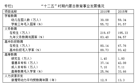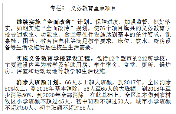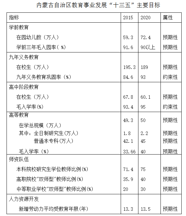 内蒙古自治区“十三五”教育事业发展规划