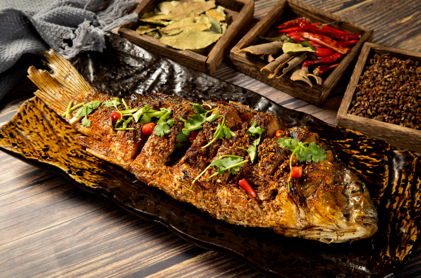 黄河水,为包头孕育出闻名遐迩的黄河鲤鱼。每年初春来临之时,包头的黄河流凌是难得一见的自然盛景,恰在此时,膘肥肉厚、口味纯正的黄河野生鲤鱼也上市了。一方水土养育一方人家,黄河沿线因黄河鲤鱼而有了黄河烤鱼的人间美味。各家鱼餐馆,以新鲜的黄河鱼为食材,把烤鱼烹制出小厨大爱,四面八方的食客,在舌尖的人生中流连忘返。黄河鲤鱼,现杀现烤,放盐、孜然、辣椒面、秘制酱汁,烤四十分钟左右,从杀鱼到上桌在一个小时内完成。肉质滑嫩,外皮焦脆,鲜香无比,真可谓“鱼惊四座”。黄河边吃黄河烤鱼,九曲黄河的风情才会品味的淋漓尽致。