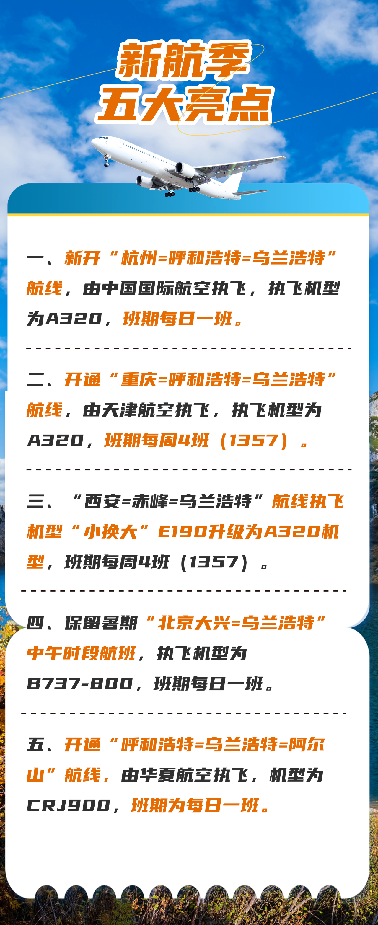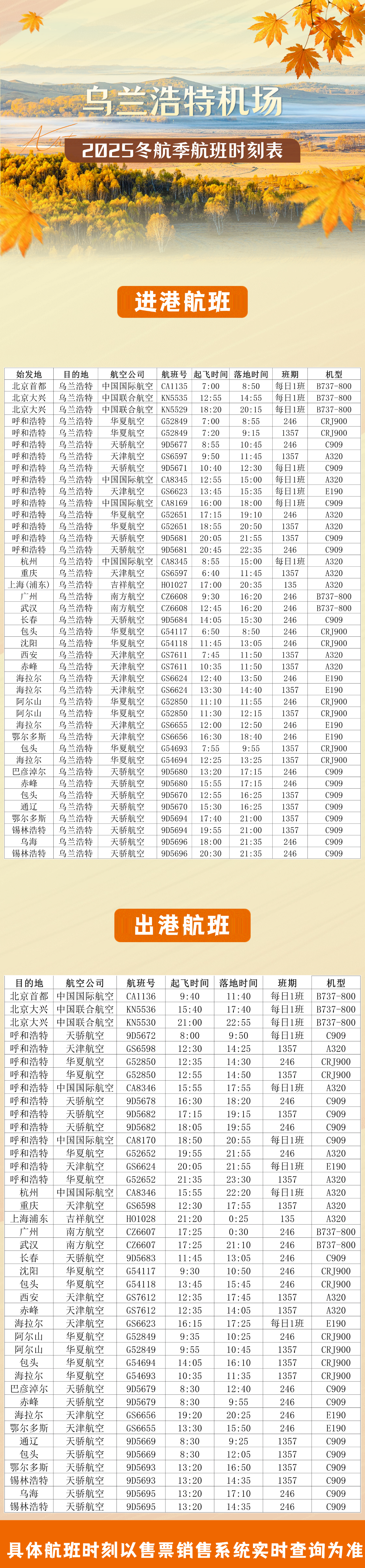 乌兰浩特机场丨新航季!10月26日起将执行冬航季航班计划!