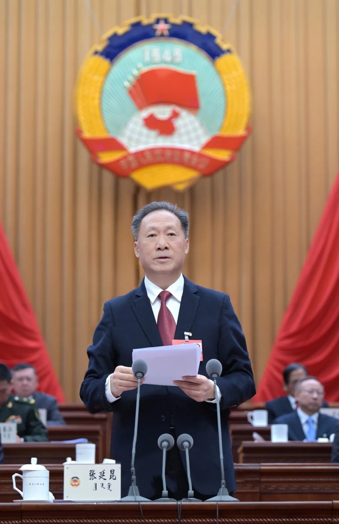2月7日上午,自治区政协主席张延昆在自治区政协十三届四次会议闭幕大会上讲话。草原云·内蒙古新闻网记者 马建兵 摄