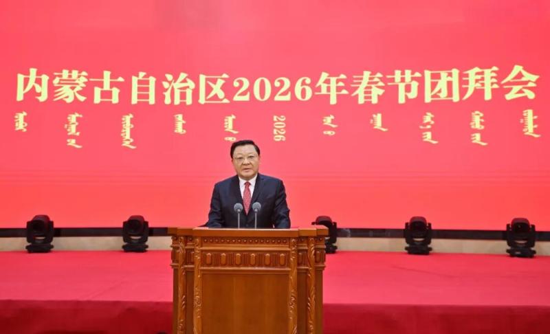 2月13日,内蒙古自治区2026年春节团拜会在呼和浩特举行。自治区党委书记、人大常委会主任王伟中代表自治区党委、人大常委会、政府、政协,向全区各族人民,向驻区解放军指战员、武警部队官兵和公安干警,向各民主党派、工商联、无党派人士、人民团体,向全区离退休老干部、老同志,向所有关心支持内蒙古发展的各界人士致以节日的美好祝福。